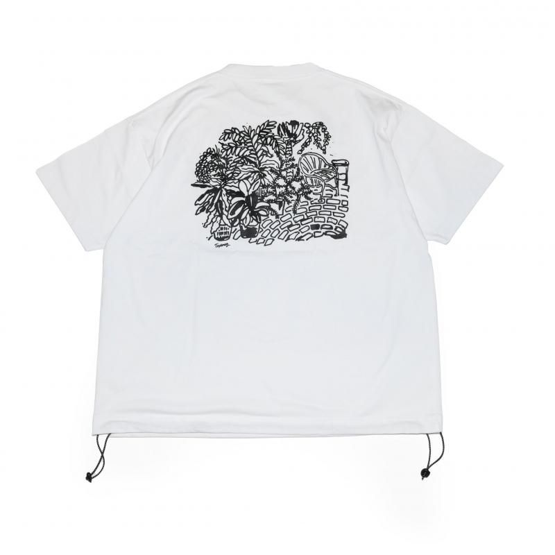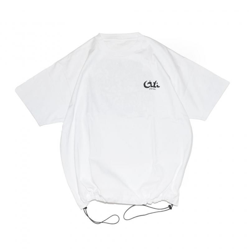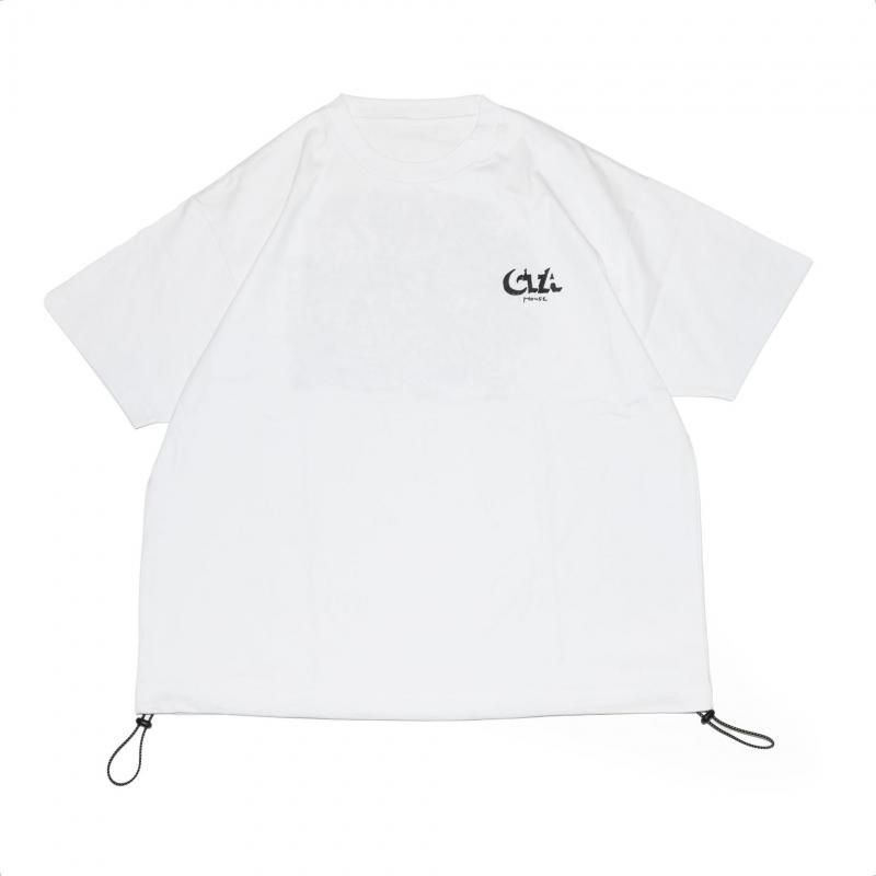 左右の裾口にアクセントとなるバイカラーのドローコードを配したTシャツ