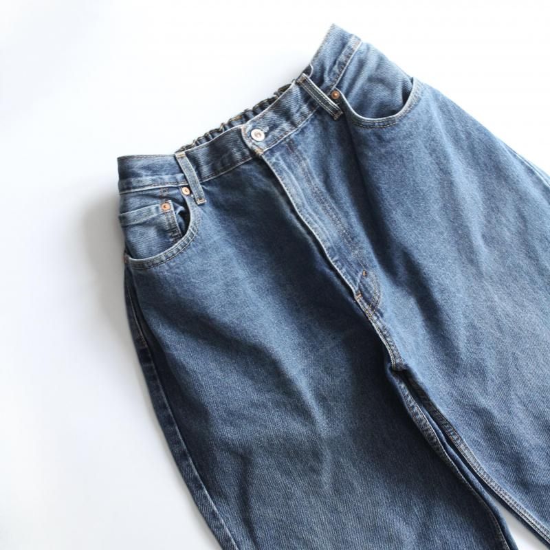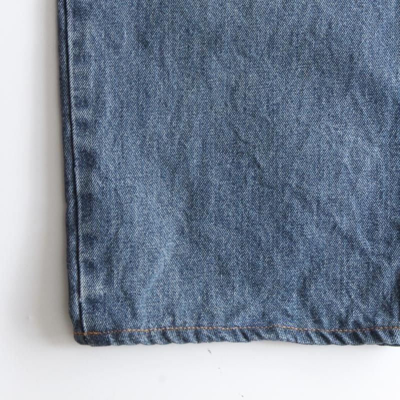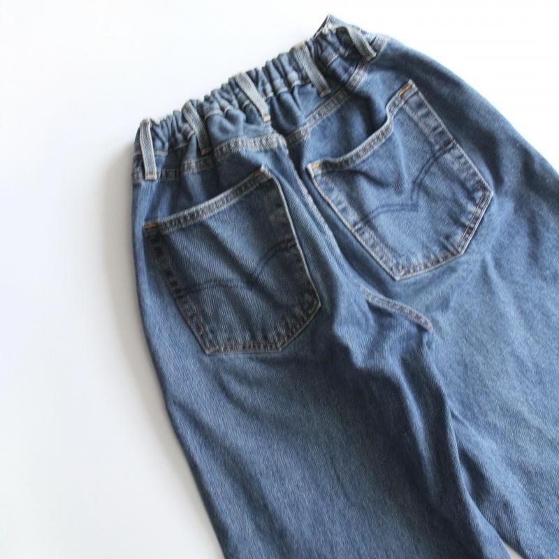 インディゴブルーのユーズド古着のデニムパンツをリメイク