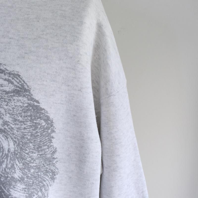 ベートーヴェンの肖像を大きく全面にプリントし、圧倒的なサイズ感と存在感が個性を放つスウェットです。60年代のヴィンテージアイテムをサンプリングして作られており、プリントはボディに深く馴染む染み込み仕上げで施され、スウェットにプリントされた際の歪みまで再現されている完成度の高さが特徴です。アメリカやメキシコ製の古いボディを厳選して使用しているため、色合い、サイズ感、風合いが異なる全て一点物。古着ならではの風合いと相まって着用するほどに表情が増し、本格的なヴィンテージの着心地と雰囲気を楽しんで頂けます。