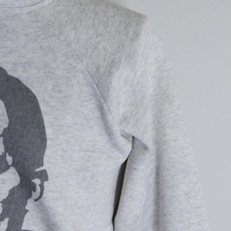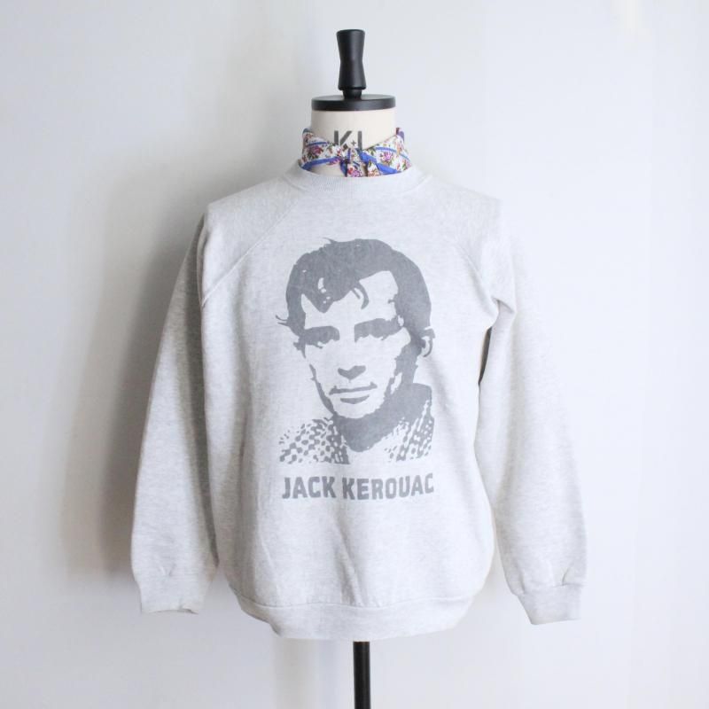 ジャックケルアックの肖像を大きく全面にプリントし、圧倒的なサイズ感と存在感が個性を放つスウェットです。プリントはボディに深く馴染む染み込み仕上げで施され、スウェットにプリントされた際の歪みまで再現されている完成度の高さが特徴です。アメリカやメキシコ製の古いボディを厳選して使用しているため、色合い、サイズ感、風合いが異なる全て一点物。古着ならではの風合いと相まって着用するほどに表情が増し、本格的なヴィンテージの着心地と雰囲気を楽しんで頂けます。